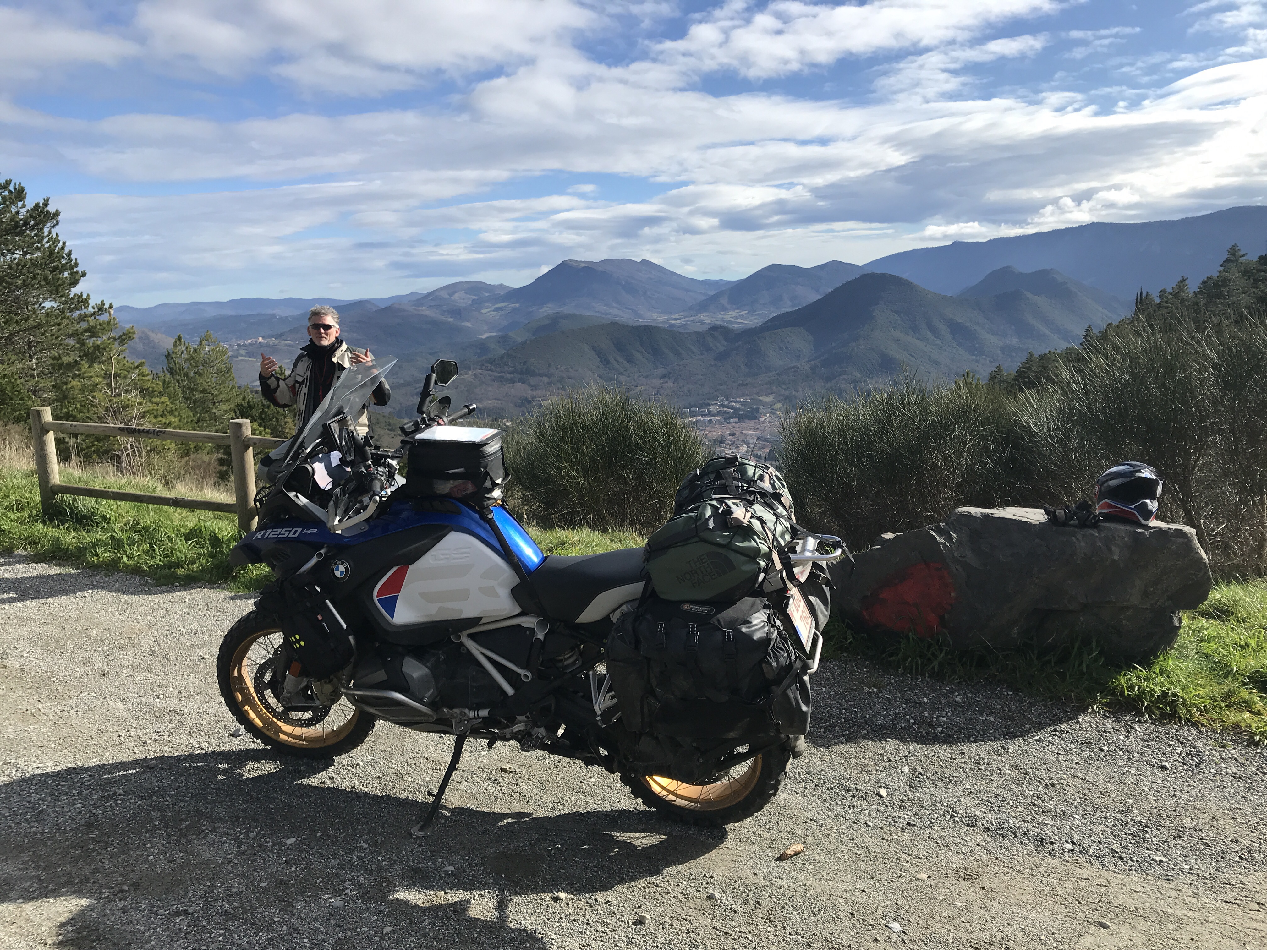 Vandaag , vrijdag dan toch overgeschakeld naar tweewieler. De klimaatproblematiek heeft hier voor een aangename verrassing gezorgd… in plaats van barre winterkoude krijg ik een zwoele zomerbries van 20 gr tegen mijn zonnebril 😎. Deze verbindingsrit brengt mij in gezelschap van mijn Franse copain Didier tot aan de toegangspoort van mijn ‘werkterrein voor de komende weken : Port Vendres aan de Middellandse zee. De zilte zeebries zal morgen plaats maken voor andere taferelen ; dan duik ik het mij onbekende achterland in van Don Quichotte.